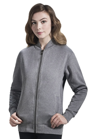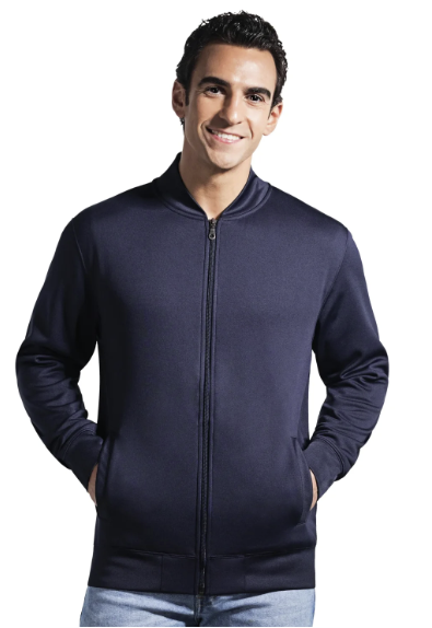 260 gsm – 7.7 oz./yd2 – 13 oz./lin. yd 100% polyester one side brushed fleece, anti-pill finish. 1x1 rib knit with spandex on collar, cuff, hem and pockets. Inner binding for enhanced finishing. Colour matching coil YKK front zipper. Sizes XS-2X