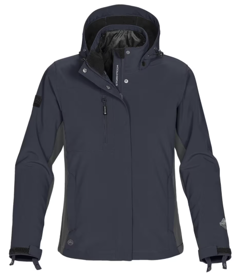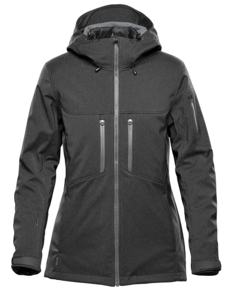 Women's Patrol Softshell - XB-3W Specs & Features STORMTECH H2XTREME® 10000/3000 Waterproof / Breathable Outer ShellSealed SeamsWaterproof ZippersDetachable Articulated Storm HoodAdjustable Shockcord HoodAdjustable HemDropped BackDual Chest PocketsArticulated Action ElbowsAdjustable Cuffs with Gusset (Solid color) 100% Polyester Mechaical Stretch bonded with 100% Polyester Single Jersey, 7.08 oz/yd2 (USA) / 240gsm (CDN); (Charcoal Twill) 100% Polyester bonded with 100% Polyester Single Jersey, 7.82 oz/yd2 (USA) / 265gsm (CDN)