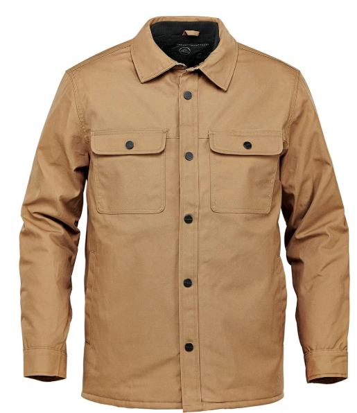 Men's Tradesmith Jacket - CWC-3 Specs & Features Cuff Placket with SnapsFlapped Chest Pockets with Button SnapsCollar StandSelf-Fabric CollarInternal Chest PocketFront Placket with SnapsWelted Hand PocketsMetal Center Front ZipperBody Lined with Sherpa (Shell) 100% Cotton, 10.32 oz/yd2 (USA) / 350gsm (CDN); (Lining) 100% Polyester